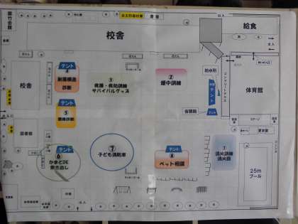 運動場では,実際に災害が起こり避難した時に行われる活動を訓練しました。炊き出し訓練,健康診断訓練,人命救助訓練などが各ブースで行われました。また,消防車に乗車する体験もさせていただきました。けむりの中を歩く訓練では,子どもたちが「何も見えない!」「怖い!」と話していました。