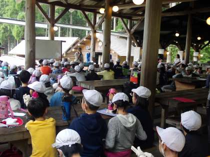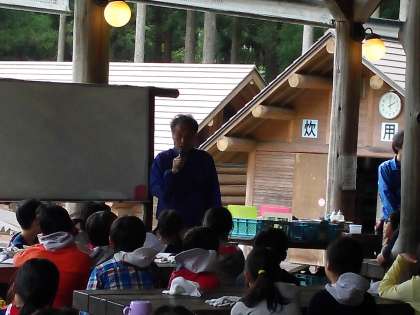 今日のメインの活動は野外炊事です。メニューは豚汁です。山の家の職員さんから注意を聞いて活動開始です。