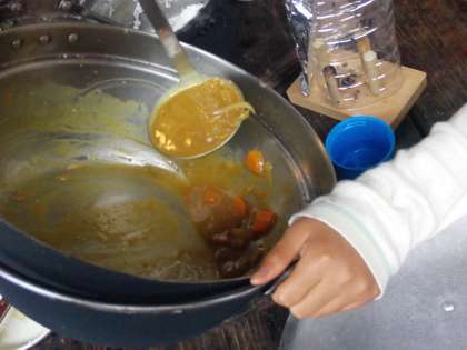 カレーもほとんどきれいに食べ切り、後片付けは昨日以上に頑張る子もたくさんいました。家に帰っても、調理をしたり、片づけたり、火をおこすことに自信がついたと思います。