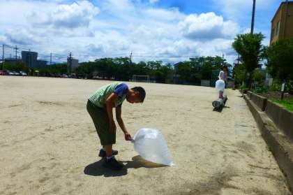 袋に空気を閉じ込めて,空気の存在を確かめました。