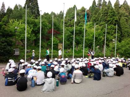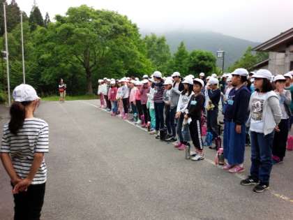 今日は、曇り空で、少し雨がちらついています。子どもたちは登山の疲れも見せず、元気に朝を迎えました。