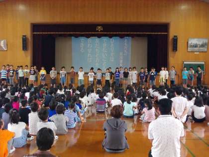 本日は,今年度第1回目のふれあい朝会でした。トップバッターは6年生です。谷川俊太郎の詩「ともだち」とともに,修学旅行で学んだ友だちの大切さや仲間と過ごす喜びを発表してくれました。旅館で過ごした友だちとの夜の時間がとても楽しかったそうです。