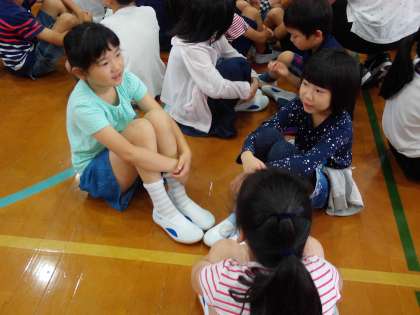 6年生の発表を聞いたあとは,2人組や3人組で感想を伝え合いました。
