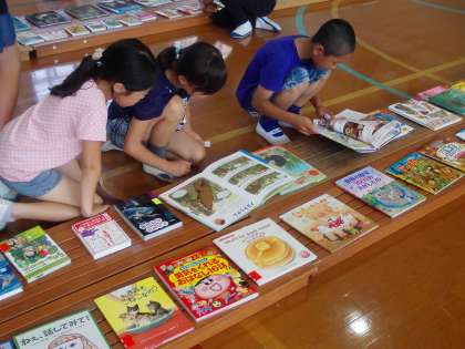 今年度も選書会が行われました。書店さんにご協力いただき,体育館にたくさんの本が並べられました。色々なジャンルの本があり,子どもたちは興味津々でした。
