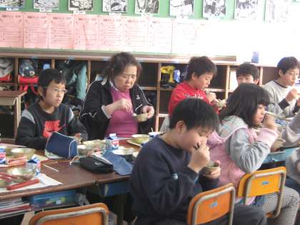 また、月曜日から給食時間に各学級へ給食調理員さんを招き会食をしています。