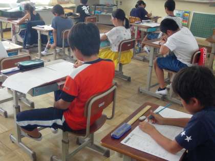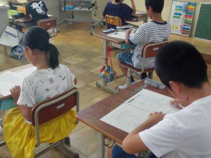夏休みが明けて2日目。4年生はプレジョイントプログラムに取り組みました。4年生にとって2回目のプレジョイントプログラムです。まだ,テストの形式に慣れていないと思いますが,みんな一生懸命に取り組んでいました。