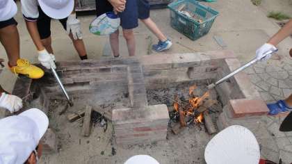 野外炊事での火おこしの練習を行いました。手順にしたがって協力して活動にのぞむすがたがありました。本番が楽しみです。