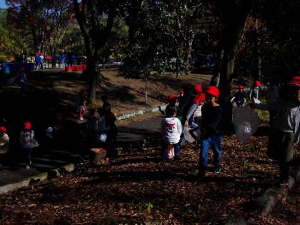 おさら公園に続いて,今日は大宮交通公園に行きました。今日は,秋になり色づいてきた葉や実が大きくなり落ちたどんぐりなどを拾いました。「きれいな葉っぱあった!」や「どんぐりいっぱい拾った!」など秋らしいものをたくさん見つけられました。