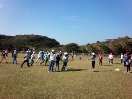 ドッチボールとけいどろをしました。広い芝生でおもいっきり走り回りました。気持ちの良い汗をかきました。
