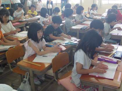 2年生は国語科「かん字のひろば」,算数科「長さ」を,3年生は国語科で「国語辞典の使い方」,図画工作科で「ホネホネ!」を学習しました。