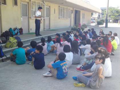 6年生の子どもたちは,笑顔で登校し,今,修学旅行の出発式を終えました。