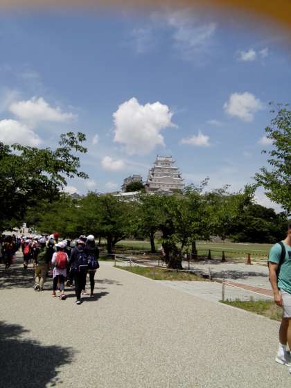 姫路城の天守閣まで登りました。急な階段を上りきって、眼下に広がる姫路の街を眺めました。