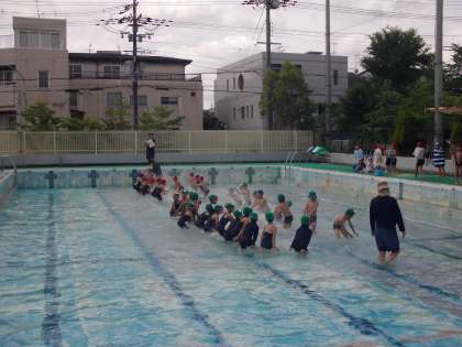 水泳学習が始まりました。1年生2年生合同で,学習しました。