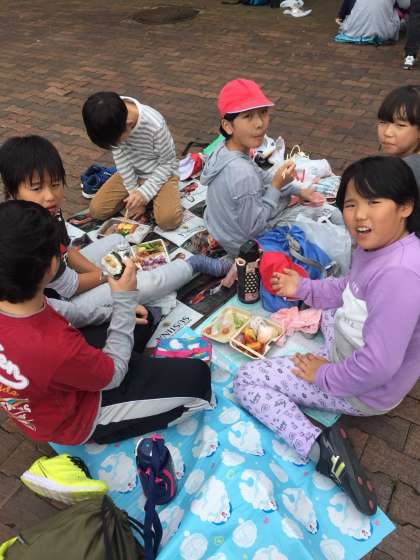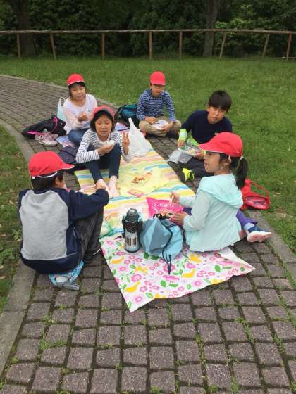 雨は降っていないので、プレイホールの外で、お家の方に作っていただいたお弁当を食べました。