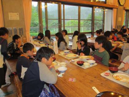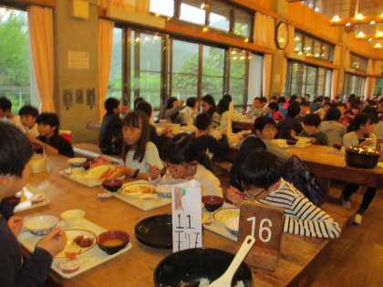 登山を終え,入浴をすませてしっかりと夕食をとりました。たくさん歩いておなかがすいていたので,たくさん食べました。