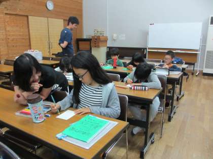 これまでの2日間を振り返って,家族への手紙を書きました。文章に絵もつけて,ていねいに書いていました。いつ家族の手元に届くでしょうか。