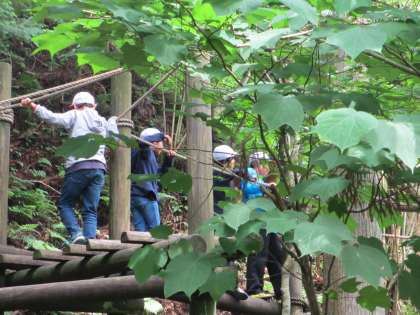 冒険の森でアスレチック。子どもたちは,それぞれが挑戦したいところをめざして,進んでいきます。
