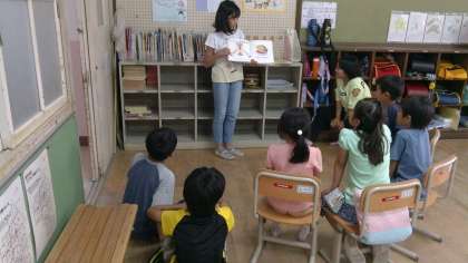自分で選んだ本の読み聞かせをしていました。