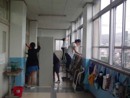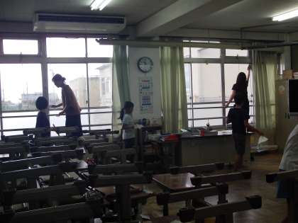 普段はなかなか手の届かない棚の上や高いところにある窓などをていねいに掃除していただいたので,とてもきれいになりました。おうちの方の姿を見て,やる気がアップした子どもたちもたくさんいました。
