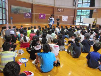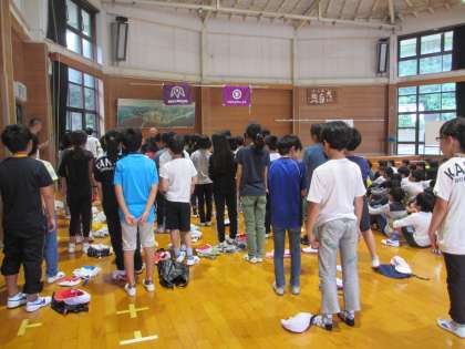 明け方に降った雨があがり,2日目の活動が始まりました。朝の集いには,5分前にプレイホールに集まることができました。