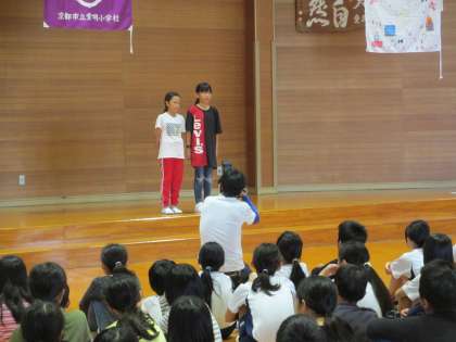 同じに日に泊まっている3つの学校で朝の集いを行いました。