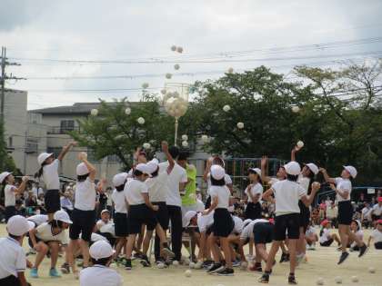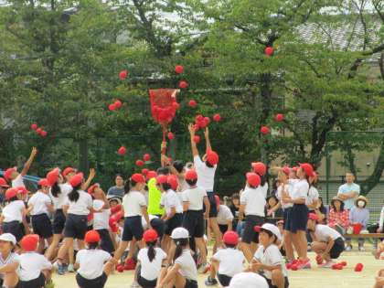 今年度の選択種目は玉入れと綱引きです。玉入れは,高学年の部で,赤組が大逆転しました。
