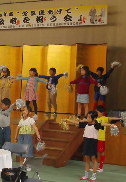 日曜日に,敬老を祝う会で運動会で踊った「京炎そでふれ」を踊りました。少し緊張していた様子でしたが,大きな動きと声で見ている人を楽しませていました。