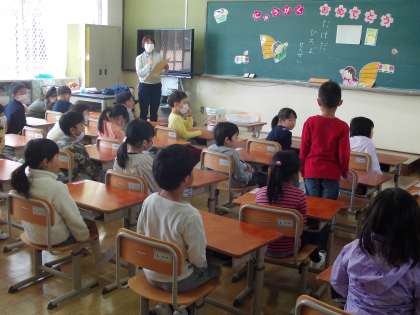 1年生はランドセルやリュックの片付け方,連絡帳や連絡袋に入っているプリントの提出の仕方,返事の仕方などを学習しました。