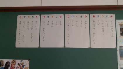 国語科の学習で,五十音を使って言葉を集めて,文づくりに取り組んでいます。