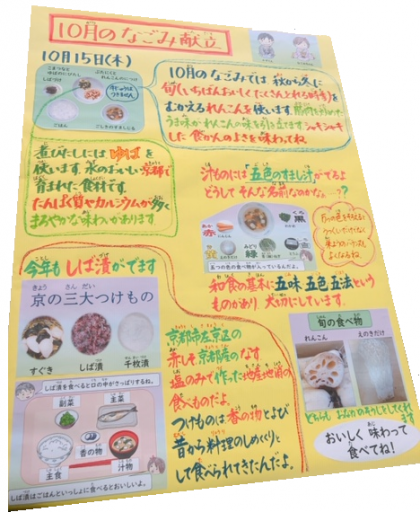 その日の献立や使われている食材についてなどが書かれており,より一層,給食や食べ物を身近に感じることができます。