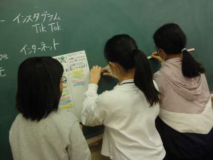 5年生は学活の学習で「情報モラル学習」を行いました。今回は「SNSの便利さやトラブル」について考えました。SNSはすぐに連絡を取れたり,離れていてもどんなときでもやり取りをしてつながれる良さがあります。しかし,依存してしまい,相手の状況も考えずに,返信を催促したり,返事が来ないことで人間関係のトラブルが起こることを学びました。SNSを使用する際には,「相手の状況を考えること」「正しく使用していくこと」が大切だと気づくことができました。