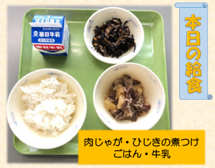 今日は,京都産の和牛を使った肉じゃがでした。シンプルな味つけが,牛肉のうま味をより引き立たせていました。じゃがいものホクホク感も相まって,よりご飯がすすむ一品でした。いつも,給食時間が近づくと美味しい香りが校舎内に漂ってくるので,子どもたちも教職員もワクワクしながら学習を頑張っています。来週の給食も楽しみですね!