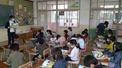 今日は,休み時間の1年生の教室を覗いてみました。友だちや担任の先生と一緒に楽しそうにお話している様子をパチリ!