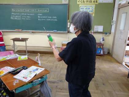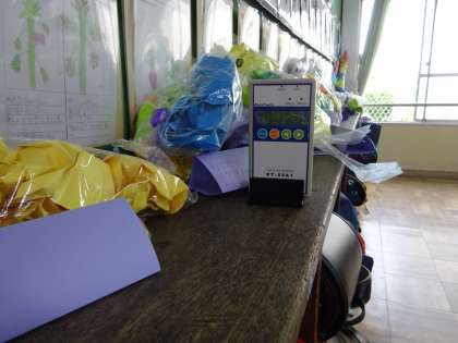 学校薬剤師の井上先生が,教室の空気検査をしてくださいました。エアコンをつけていますが,換気の為窓を開けていることもあり,空気は汚れていないということでした。