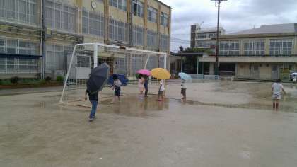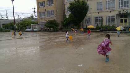水たまりに入ると,水がぱちゃぱちゃはねて楽しそうでした。