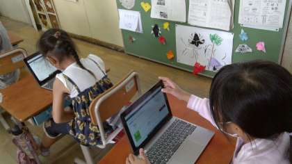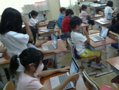 子どもたちはパソコンで,算数の問題を夢中になって