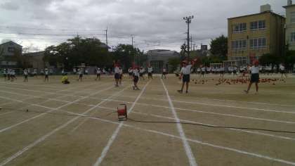 今日は,ミニ運動会でした。2年生は,50m走・バラエティー走「とんで とんで みらいへジャンプ」・ミッキー玉入れにチャレンジしました。力いっぱい頑張ることができました。