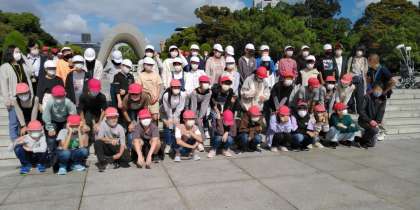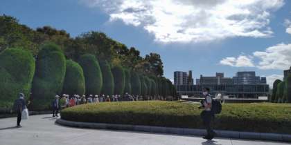 平和公園から資料館へ向かいます。去年より人が多いです。