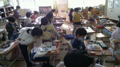 子どもたちは,嬉しそうに作ったリースを眺めていました。