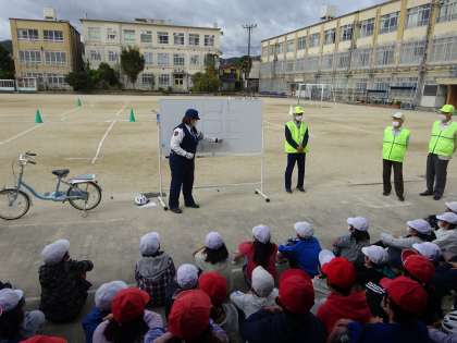 警察署と地域の方にお世話になり,自転車教室をしました。