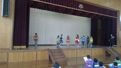 ミニ学習発表会に向けて練習をしています。広い体育館で後ろの方まで発表が伝わるように,みんなで頑張っています。