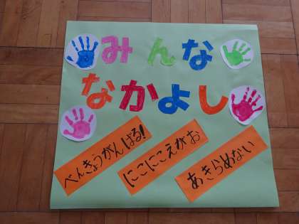 「みんななかよし」を合言葉に,1年間素敵なクラスになるように頑張っていきます。