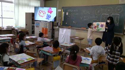 みんな自主的に前に出てきて工夫したところや作品に込めた思いを一生懸命に話していました。友だちの発表に,教室中から拍手が起こっていました。
