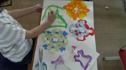 前回,少し紹介した図画工作科の学習「ちょきちょきかざり」。今日は,前回紹介していない隣のクラスの様子を紹介します。