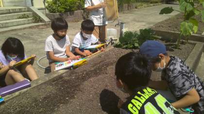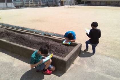 ヒマワリ,ホウセンカの種をまき,芽が出てきました。子どもたちはその様子を観察し,「どんなふうに大きくなって,花を咲かすのだろう。」と心待ちにしています。