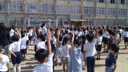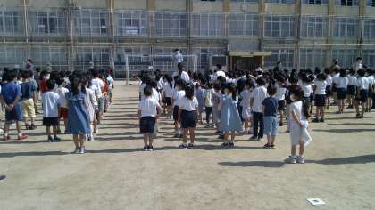 6月は本年度初めての運動場での朝会でした。1年生にとっては,全校で整列するのも,対面で校長先生のお話を聞くのも初めての経験でした。初めに「礼」の練習をしました。「上手にできた人?」という質問にたくさんの子どもたちが手を挙げていました。