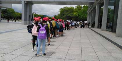 広島に着きました❗雨は、あがっています。資料館には、他からの修学旅行生も、たくさん来ています。