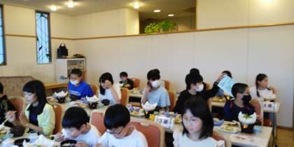 おなかがすいていたのか、早くに食堂におりてきて、7時10分から美味しい食事を頂いております。
