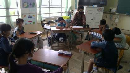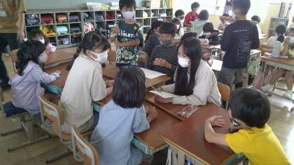 児童集会のある日はたてわり遊びを行います。今日は,一回目だったので,同じグループのメンバーと顔を合わせて自己紹介をしました。