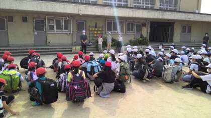 晴天の中,山の家1日目の朝を迎えました。大きな荷物を持って登校する5,6年生の表情はいつも通りで,「昨日はしっかりと眠れたのかな。」と思いました。